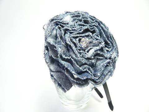| 流行のデニムの大きなお花のカチューシャです。 | ||