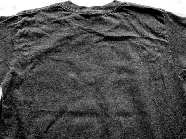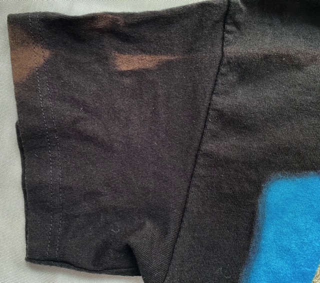 ■状態 :USED品です。使用感があります。畳んだ状態で保管されていたのでシワがあります。ブリーチ剤がついたのか分かりませんが前面に画像のような変色箇所。後面には白っぽくなった箇所と小さなシミ。色褪せ、色落ち、ヤケ、シミ、多少の汚れ、キズ、スレ、毛羽立ち、毛玉、型崩れ 等があります。見落としはご容赦くださいませ。