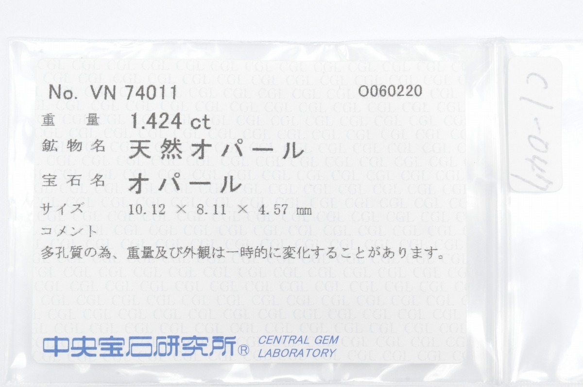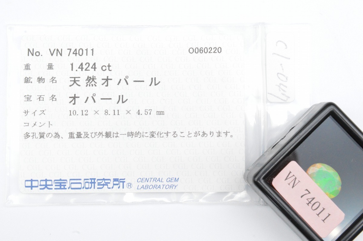 商品名 | 天然オパール【多孔質】ルース 1.424ct 遊色 オーバル CGLソーティング 宝石 ジュエリー 製品制作 コレクション |