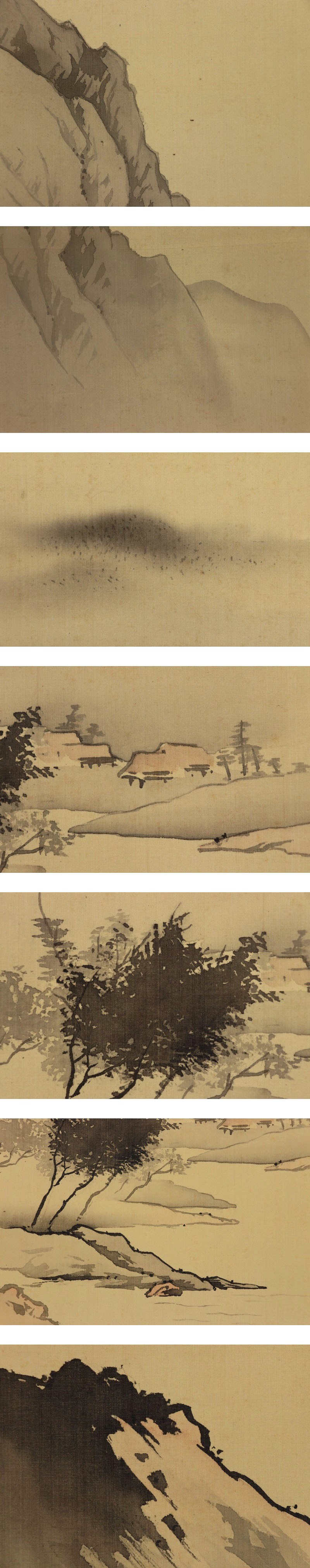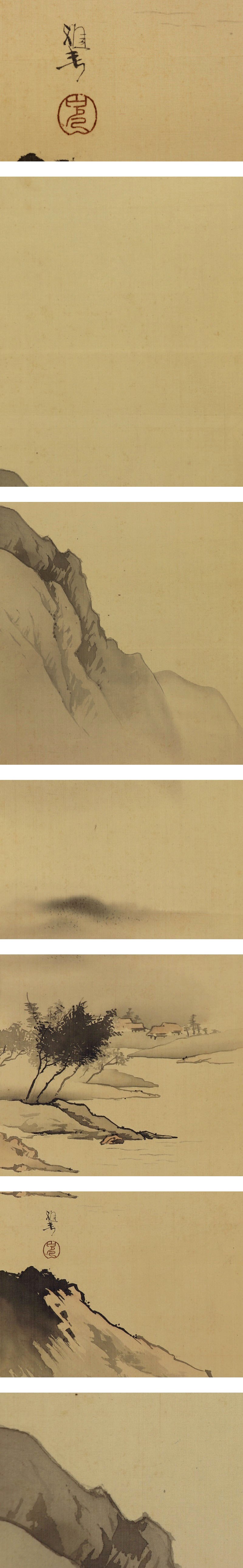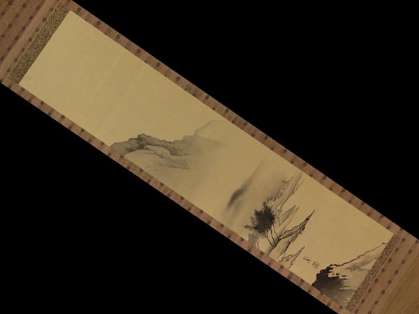 | №2110224【模写】橋本雅邦【淡彩山水図】◆絹本◆合箱◆掛軸 | |