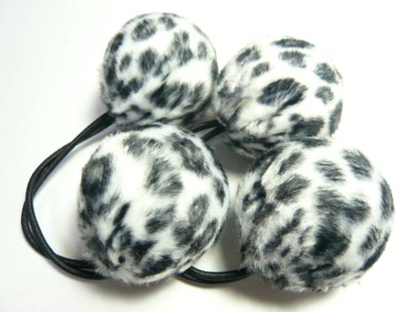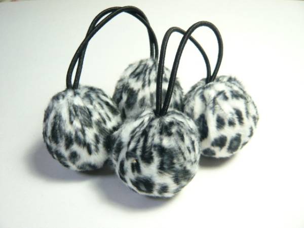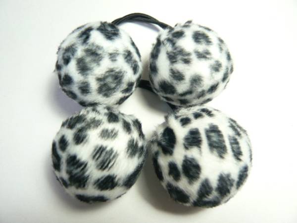 | 今年、大流行のヒョウ柄のファーのボンボンのヘアゴムを2個セットにしました。 | ||