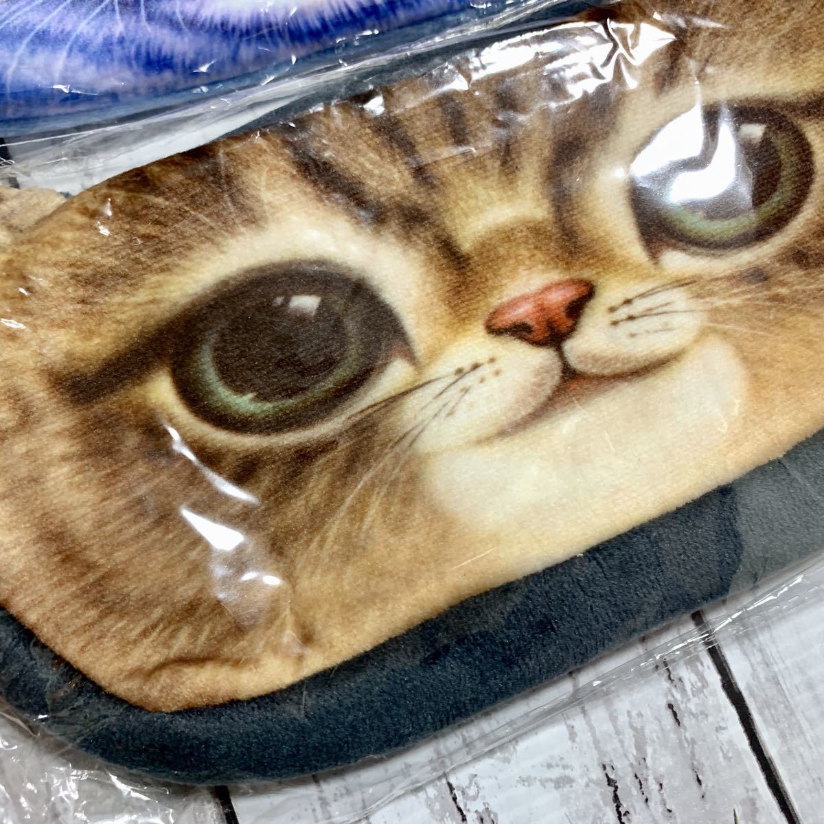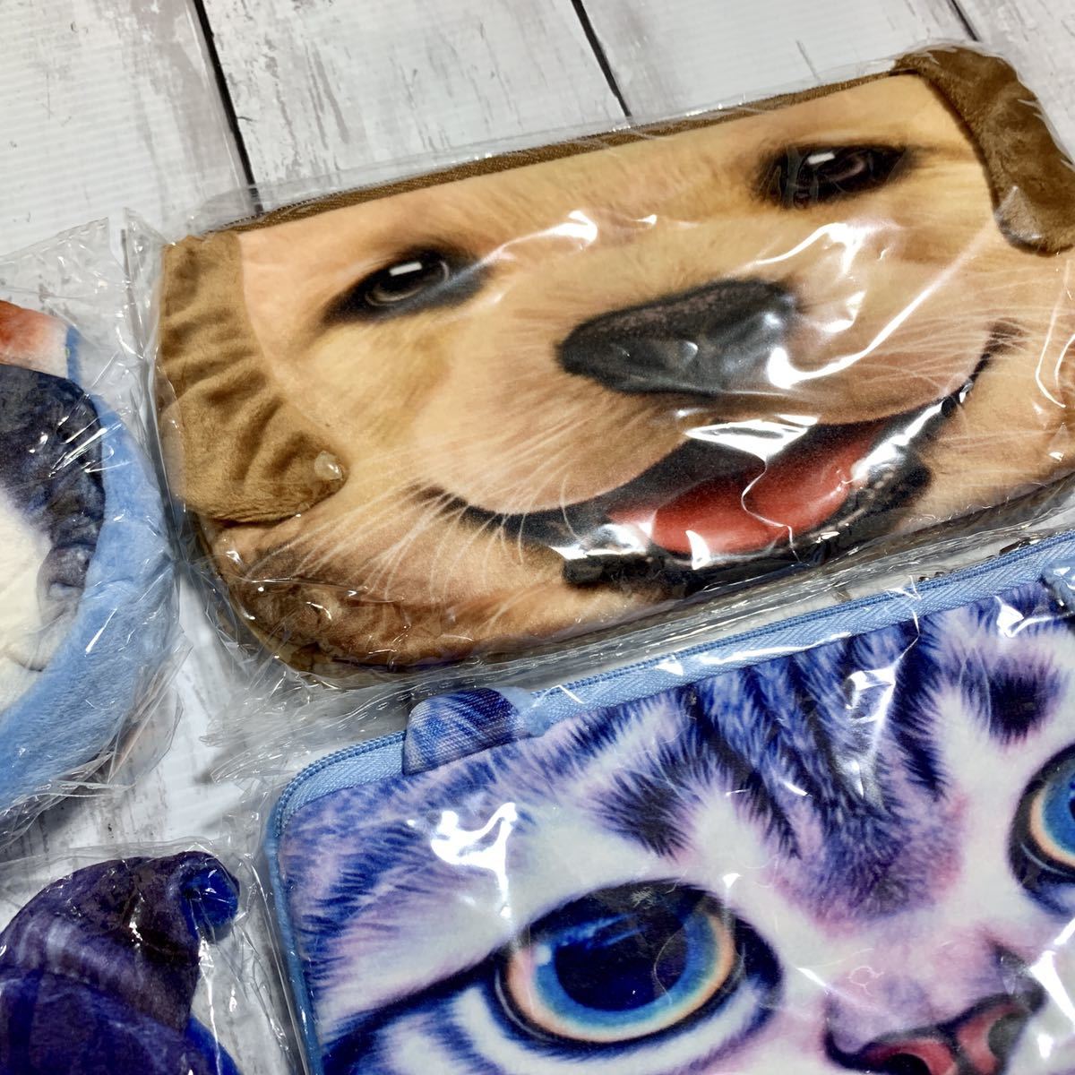新品未使用 アニマル転写プリントの横長ネコちゃん、ワンちゃんの顔の多目的ポーチです。