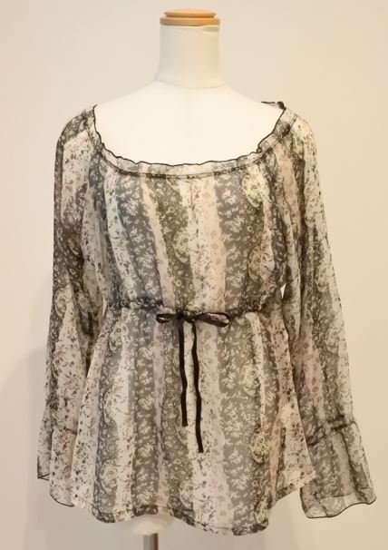 | Paix et Doux ペイドゥー ブラウス 長袖 シフォン Mサイズ 小花柄 グリーン系 オールシーズン mrutkik a201h0121 | |||