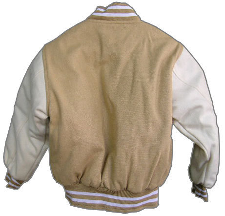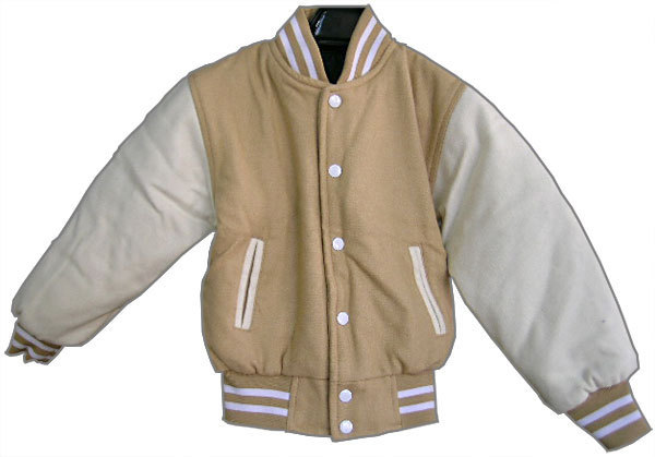 ベージュと白の無地スタジャンです。ノーブランド。中国製。