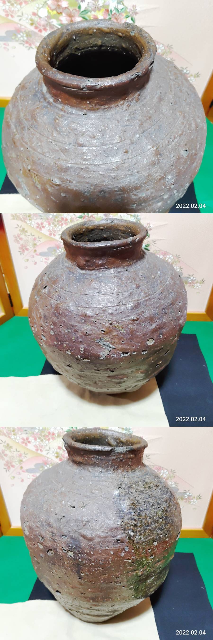 (鳥羽庵)初荷品古信楽焼壺室町期~江戸期 トロトロ被り灰振り振り壺 商品サイズ 高さ約33センチ 横幅約26センチ位です。 商品状態説明 古信楽焼壺室町期~江戸期 トロトロ被り灰振り振り壺窯の中で、自然蚰がはじけて見事なトロトロ感とても素敵な景色がでてます。 詳しくは、写真ついてますので参照お願いします。(下にフォトアップ写真ついてますので参照お願いいたします。) 発送は、ゆうパックにて発送いたします。 落札後ヤフーシステム期間内すべて取り引きお願いします。