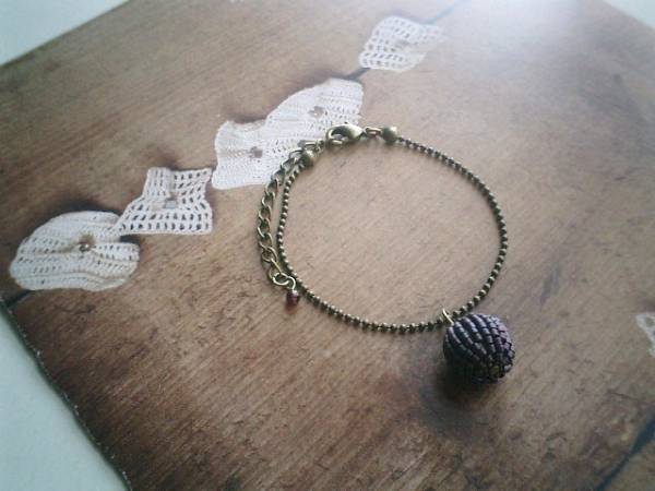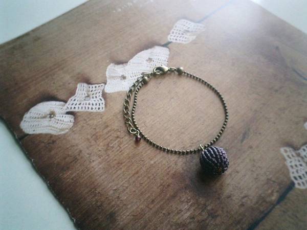ロゼッタのおめかし・・シリーズです♪秋色の組み合わせ・・華奢なボールチェーンにキュートなボール玉を合わせて可憐な表情です♪トップが取り外しが出来るのでトップなしのシンプルなデザインで楽しんだりしていただけます♪深いパープルグレーのビーズ玉は11ミリ位です♪長さは16センチ+アジャスター6センチで最長22センチ位です♪お揃いのネックレスやブレスレットも出品しています♪♪シンプルで長く着けていただけるデザインを考えて作りました♪ハンドメイドをご理解頂いてノークレーム、ノーリターンでお願いします