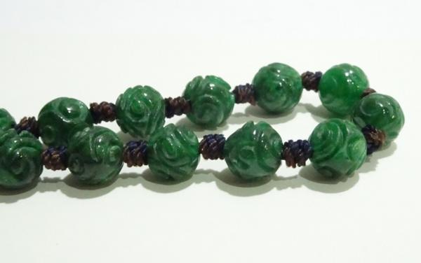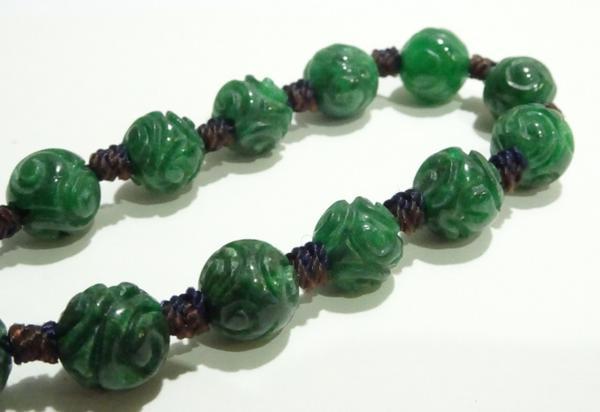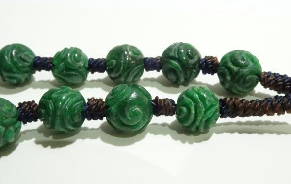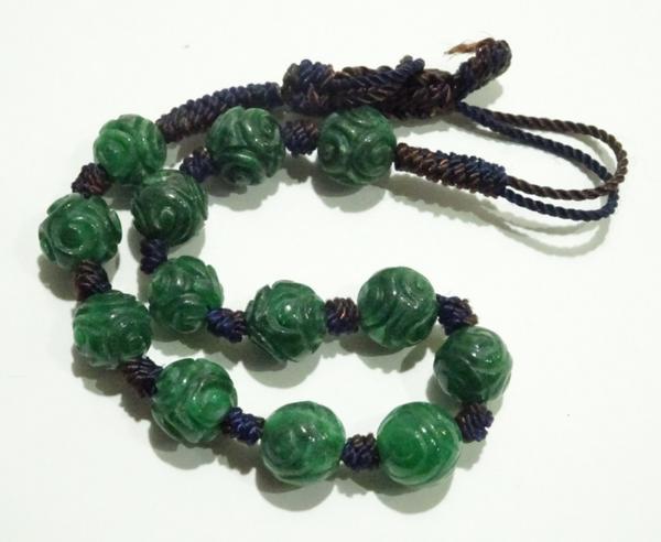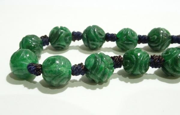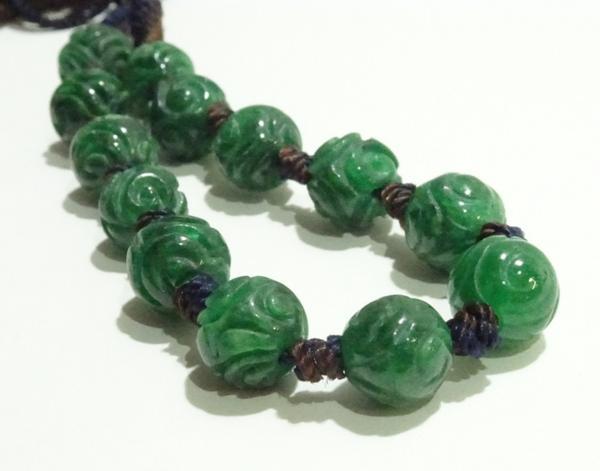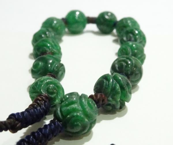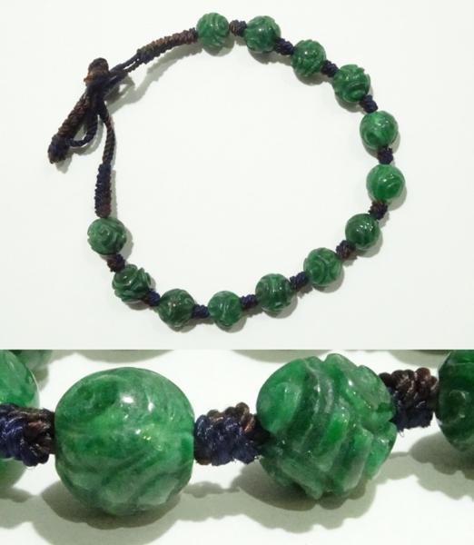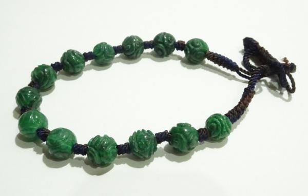 素材:翡翠。珠の直径0.75cm、13個珠あります。紐長さは全長24cm、短くも出来ます。