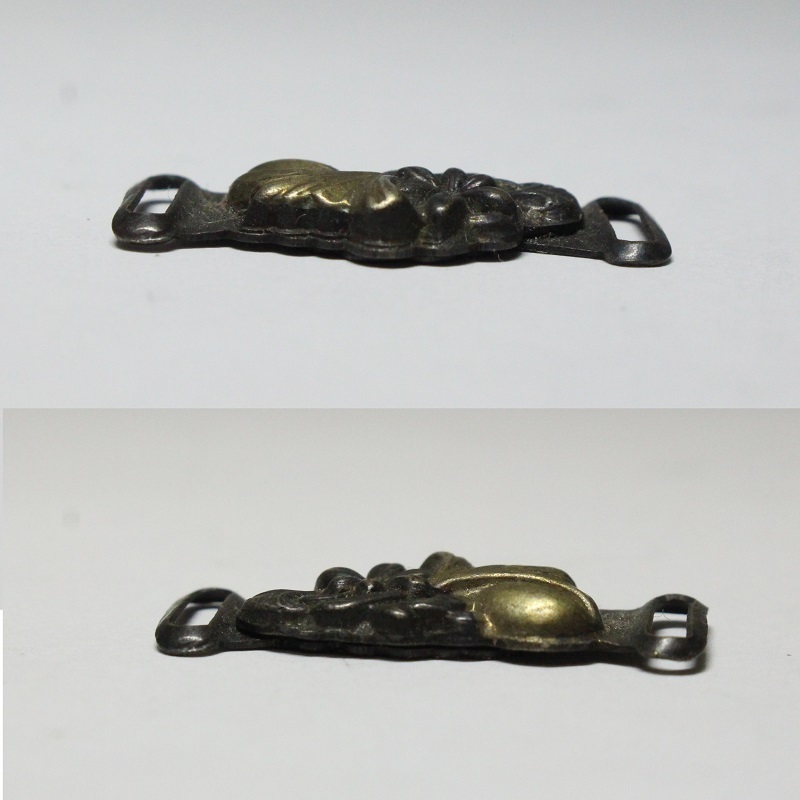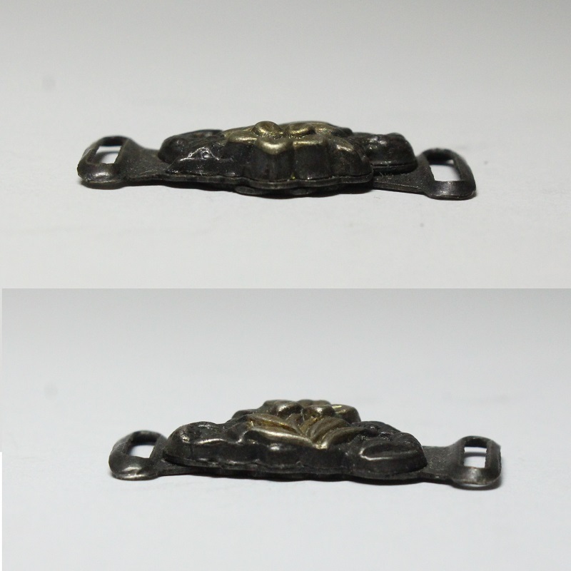 レターパックライトでの発送可能ですが、かんたん決済で精算される場合はご連絡いただくか送料を変更してお支払い下さいます様よろしくお願いいたします。素材:金属。サイズ約1.1cm×2.8cm、紐幅約8mm、重さ約3.4g。後ろ面にテープ跡があります。