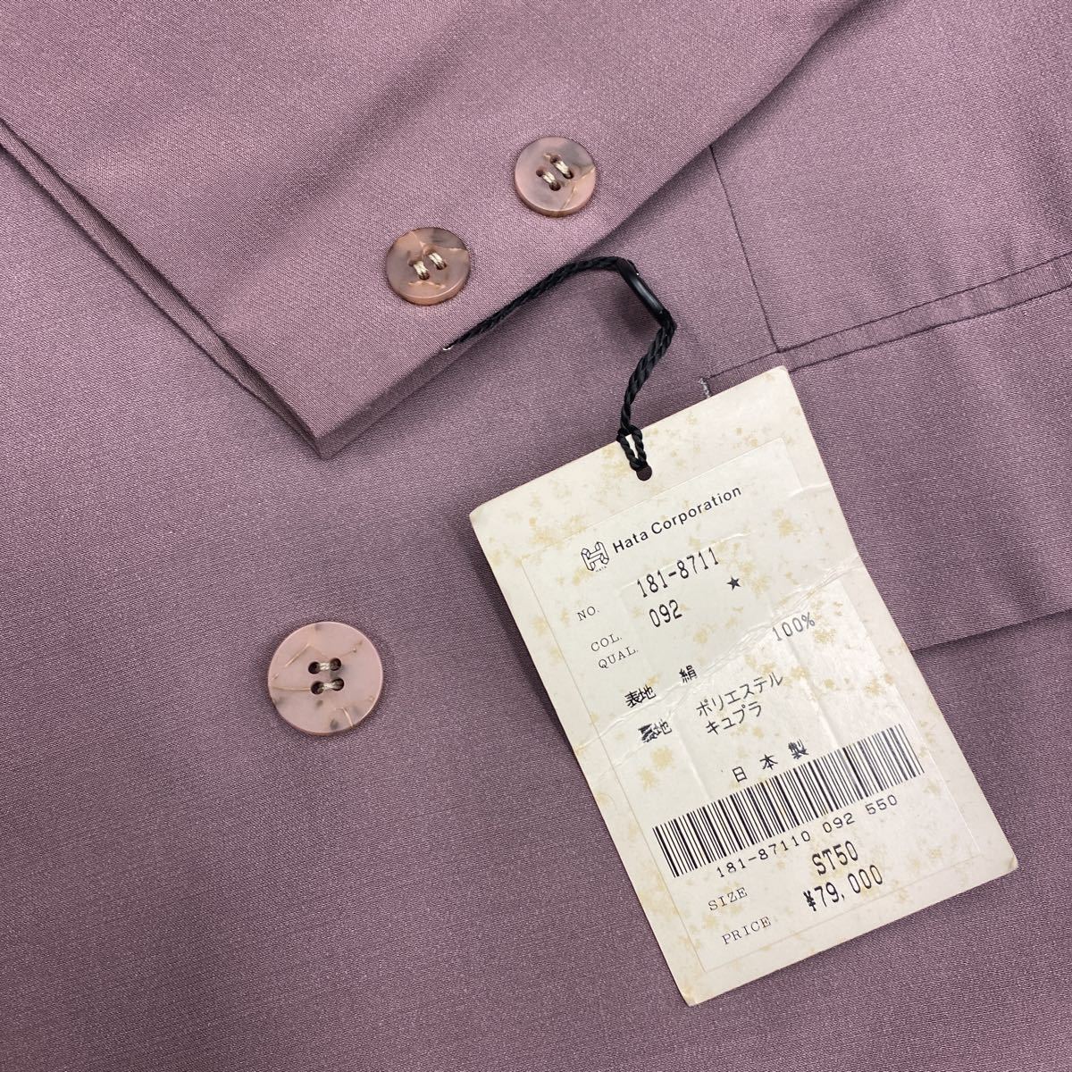 ジャケットはピンク大理石風ストーンボタン