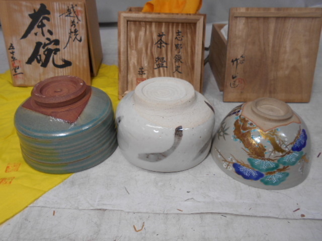 志野鉄文(荘造)九谷焼(竹山造)越前焼(五十平窯)3点まとめて 共箱美品 抹茶道具 本物保証 越前蔵うぶ出しです。