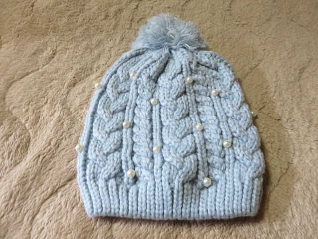 ニット帽 ニット帽子 ぼうし サイズ目安53~55cm ライトブルー 未使用 を出品します。