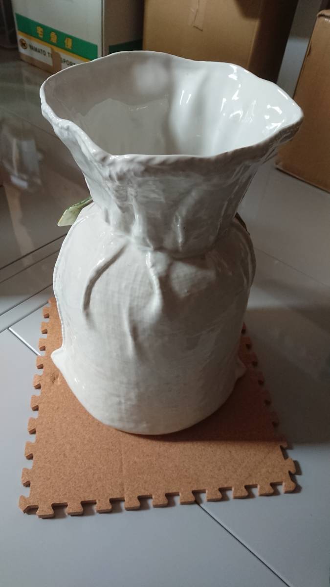素晴らしい西洋の花瓶です。布袋を象った感じに見えます。イタリア製だと思います。穴はないので水瓶としても、あるいは傘立てなんかにも使えるかもしれません。だいたいですが高さ34センチ、幅25センチほどです。ゆうパックにて。苦情返品なしでお願いいたします。