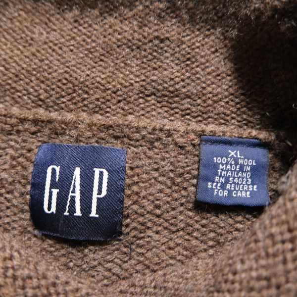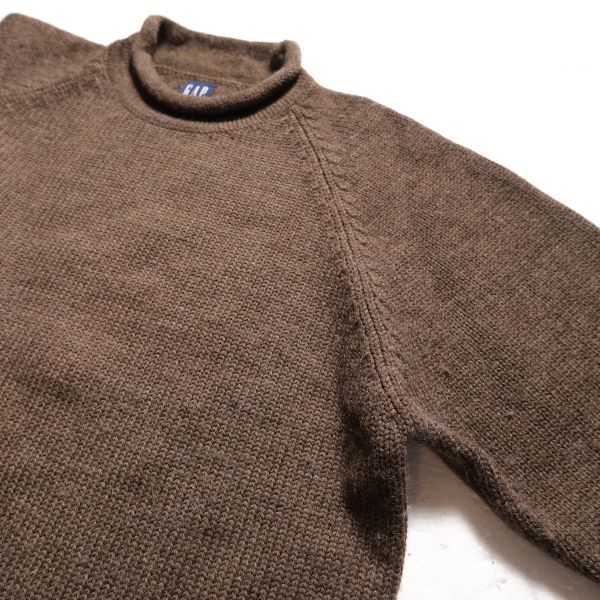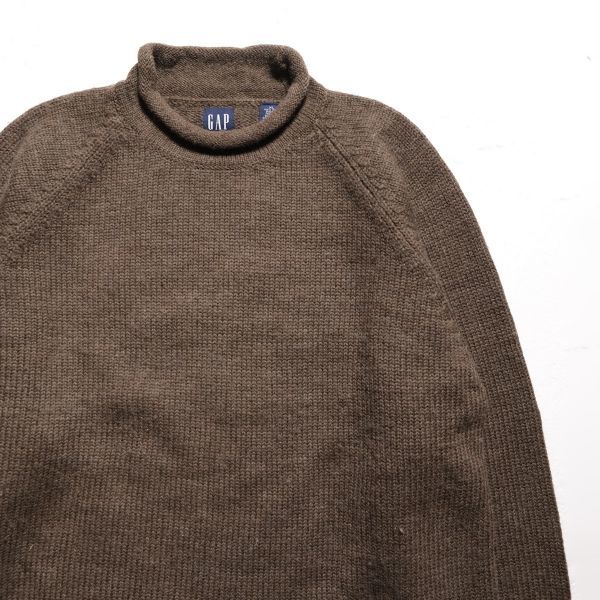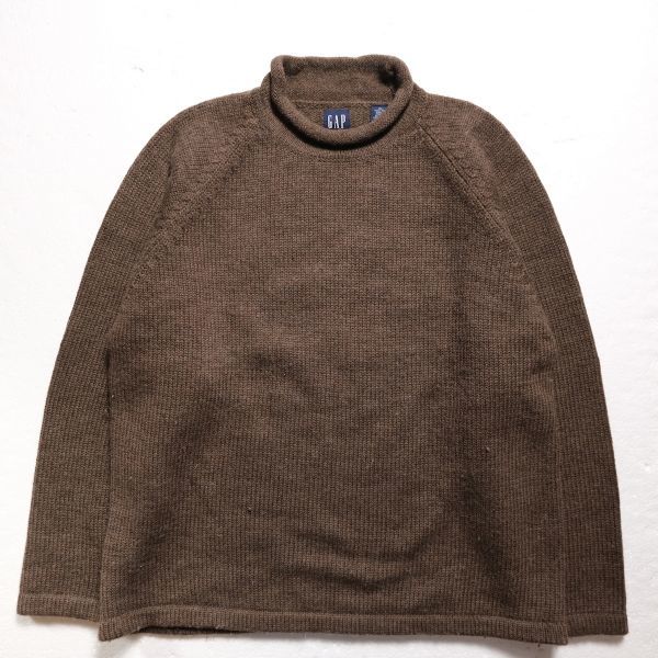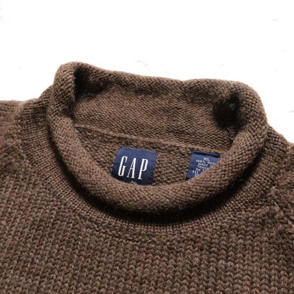 90's ギャップ GAP ロールネック ウール ニットセーター 茶色 (XL) ブラウン ハイネック リブ無し 90年代 旧タグ オールド 青タグ