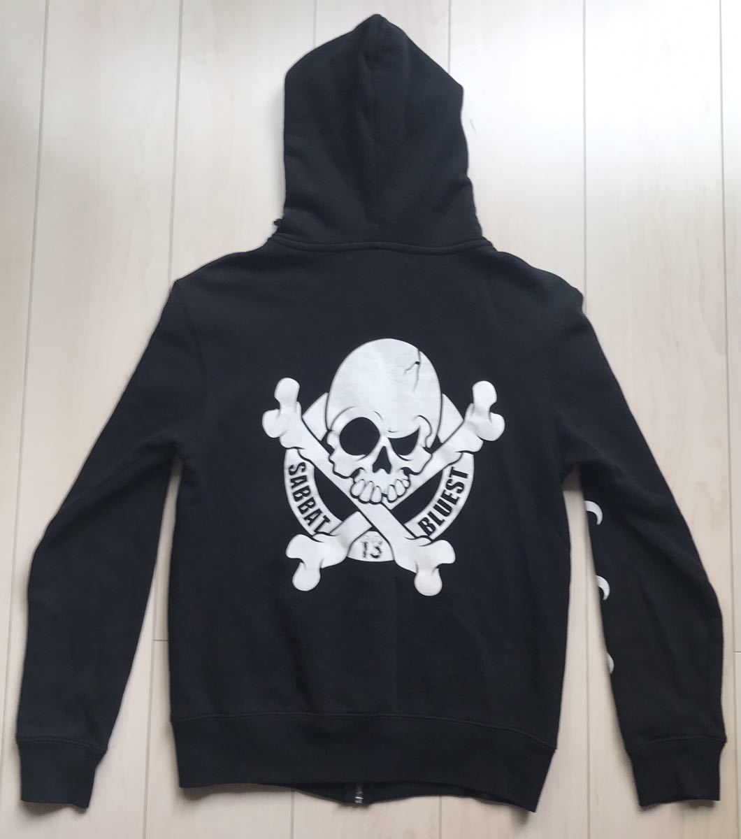 SABBAT 13 BLUEST ドクロ 髑髏 ガイコツ 長袖 フード ジャケット パーカー 【 黒 / S 】 サバト 骸骨 クロスボーン 海賊