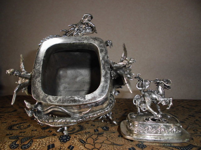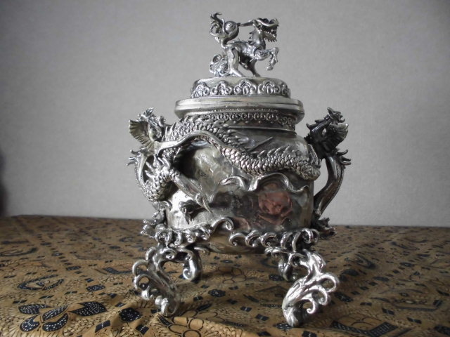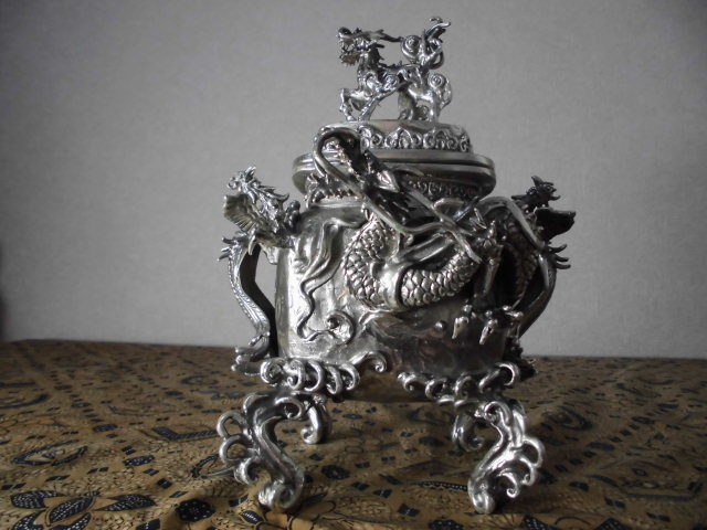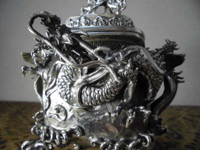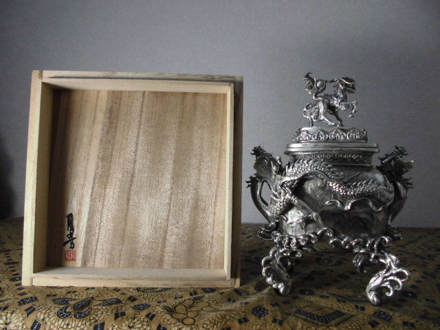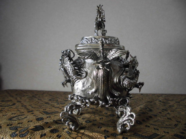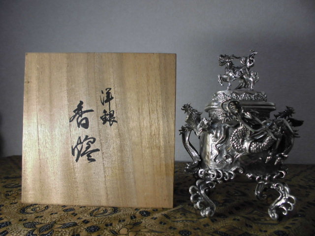 【商品説明】月芳作の洋銀香炉。とても素晴らしい逸品です。【サイズ】高さ19.5センチ【2021年3月31日出品】