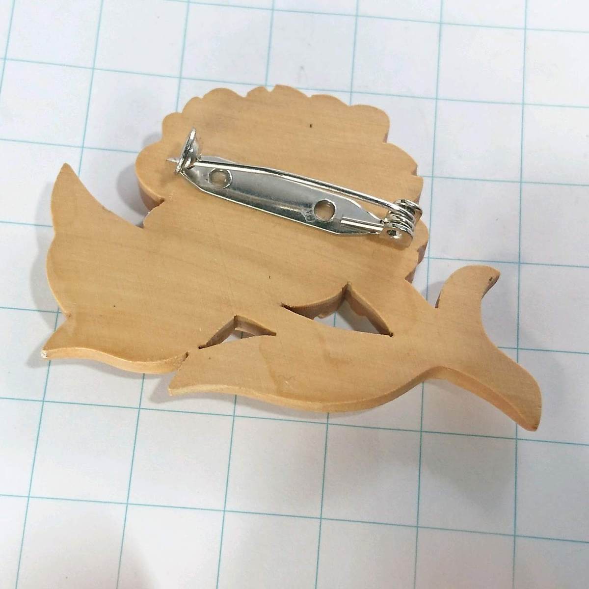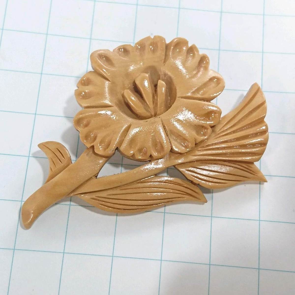 送料無料)ビンテージ☆木彫り お花デザイン ☆ブラウン☆アンティークブローチ A06690