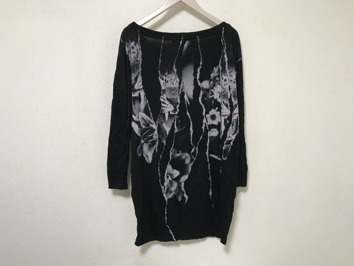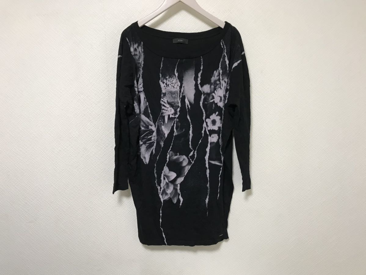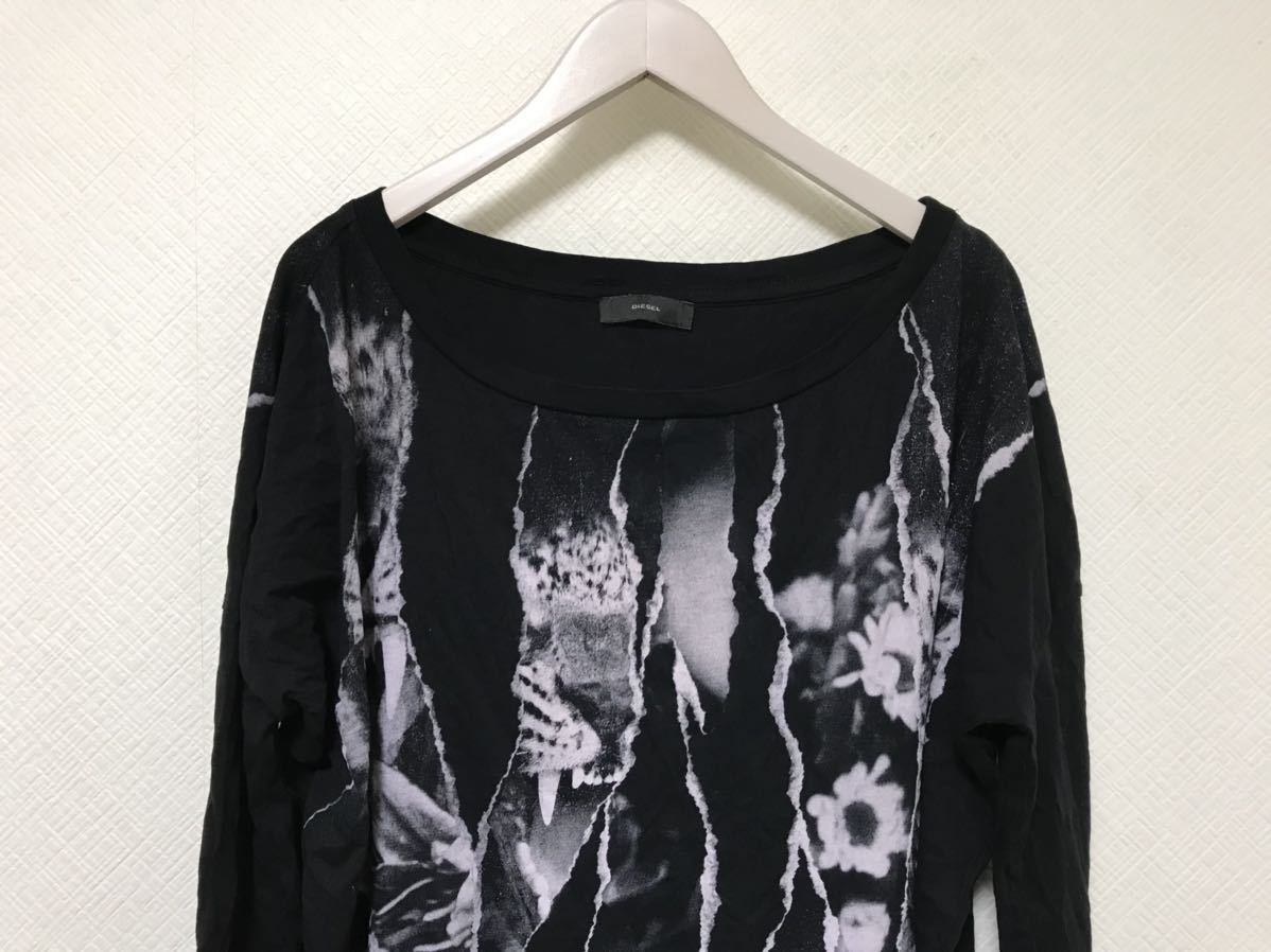 商品名:本物ディーゼルDIESELタイガートラ虎プリント長袖7部丈Tシャツレディース黒ブラックXS