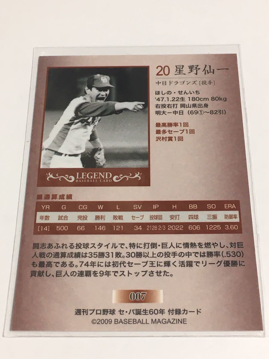 中日 星野仙一 7 週刊プロ野球 セパ誕生60周年 付録カード BBM2009