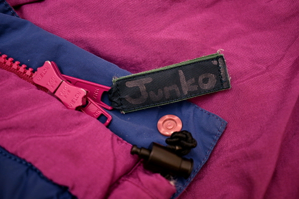 ファスナーのチャーム(ファスナーの先の飾り)裏側にネーム記載あます。(着用時にはほとんど見えませんが、気になる方は、取り外されるか、同色のペンなどで塗りつぶすと目立たないかと思います。)
