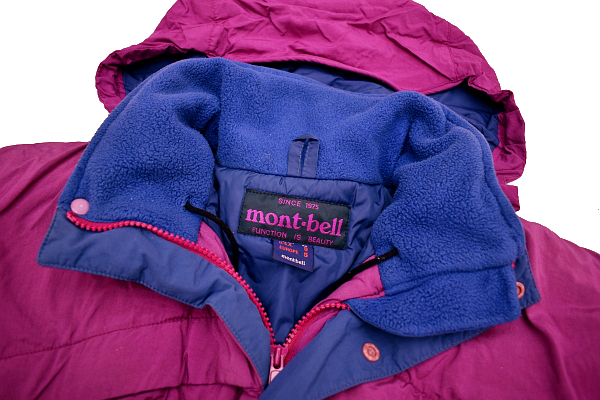 A-3385★送料無料★mont・bell モンベル★透湿 防水素材 パープル紫色 フード内蔵 防寒中綿 ジャケット マウンテンパーカー ジャンパー M