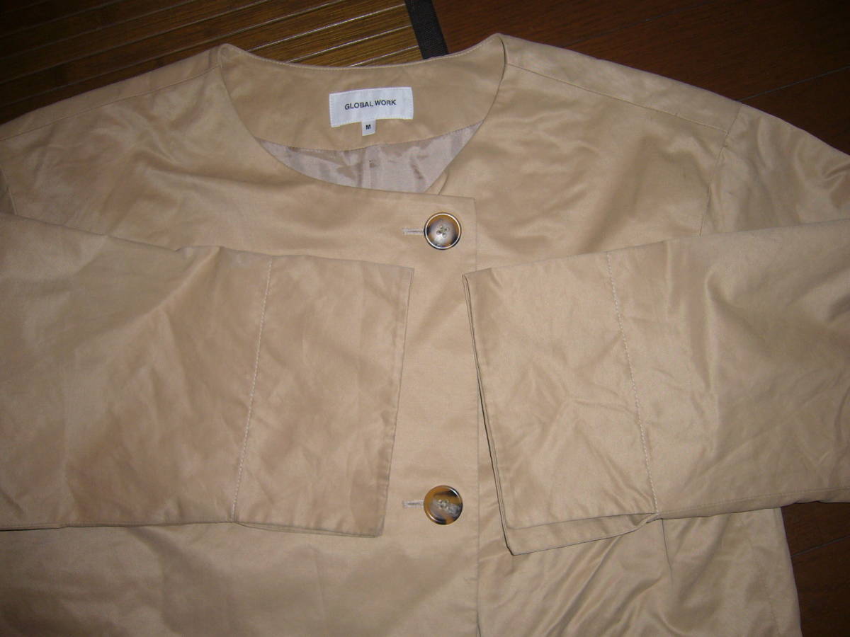 762-50♀:GLOBAL WORK  グローバルワーク  クルーネック ロングコート size.M 色.ベージュ 3シーズン