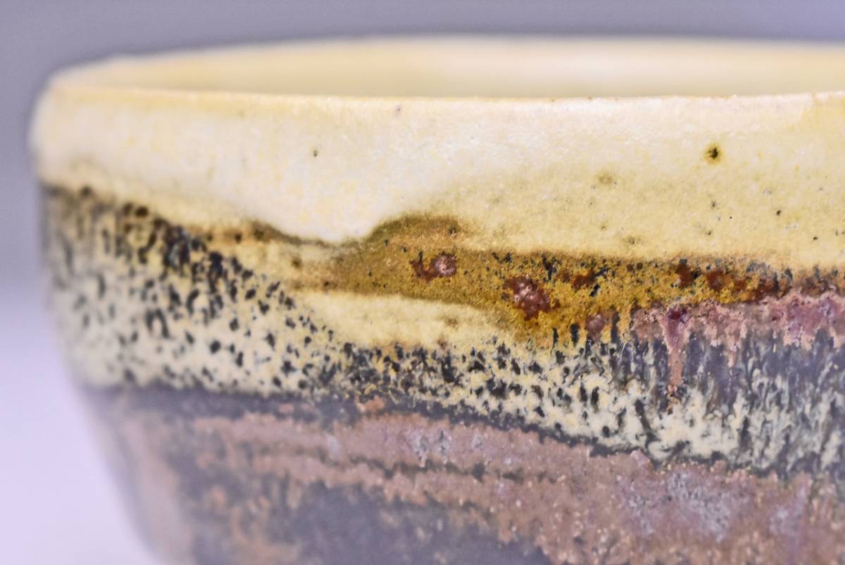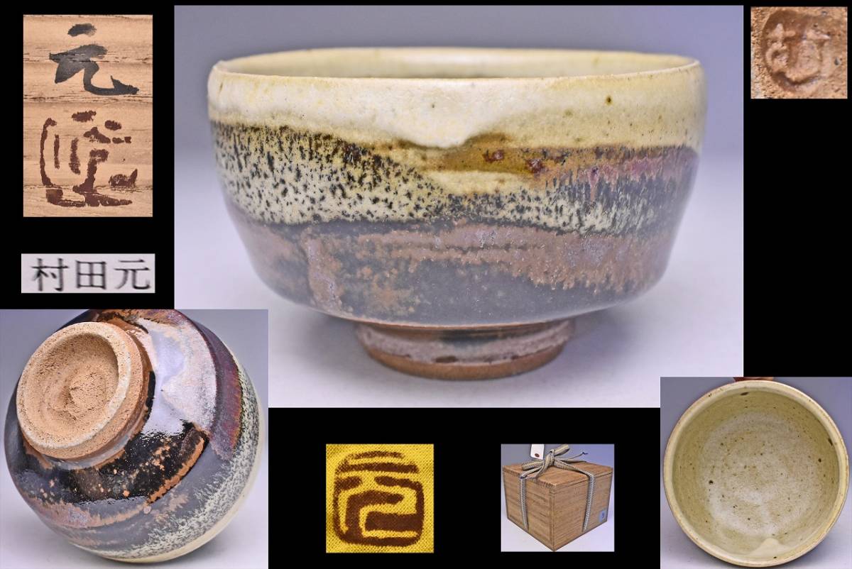 サイズは 132mmx高さ81mm です。 益子の 人気陶芸家 村田元 氏の 作品です。 柿釉に 白釉を掛けた 茶碗です。 どっしりとした 造形でありながら、口元の繊細さが光る、 村田元 氏らしい 作品です。 宅配便80サイズにて発送します。 他にも多数出品してます。同梱対応いたします。