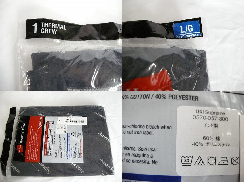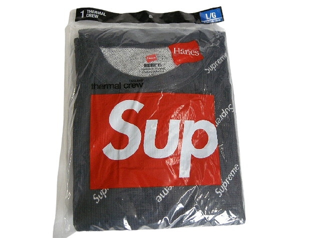 L■2020AW■Supremeシュプリーム■Hanes Thermal Crewヘインズサーマルクルーネック 1pack/一枚/総柄/ロンTEE/LS/長袖Tシャツ/スウェット黒