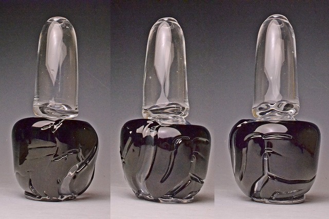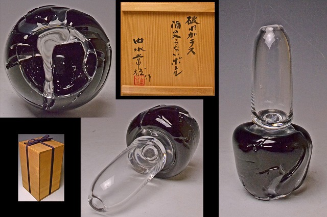 由水常雄 ★ 『 酒の入らないボトル 』 破れガラスシリーズ ★ 共箱 ★ 不思議な魅力の逸品 ★ オブジェ 飾り ★ 硝子作品 ★