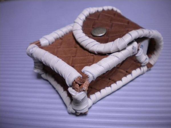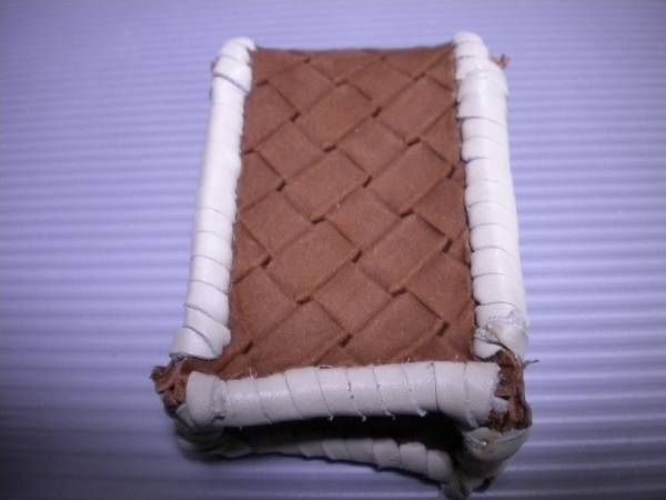 ケース周囲は、ホワイトクリームのレザーで、かがり仕上げをしています。