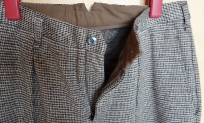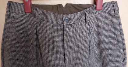 フロントのタックを深めにとることで腰回りにボリュームを持たせ、