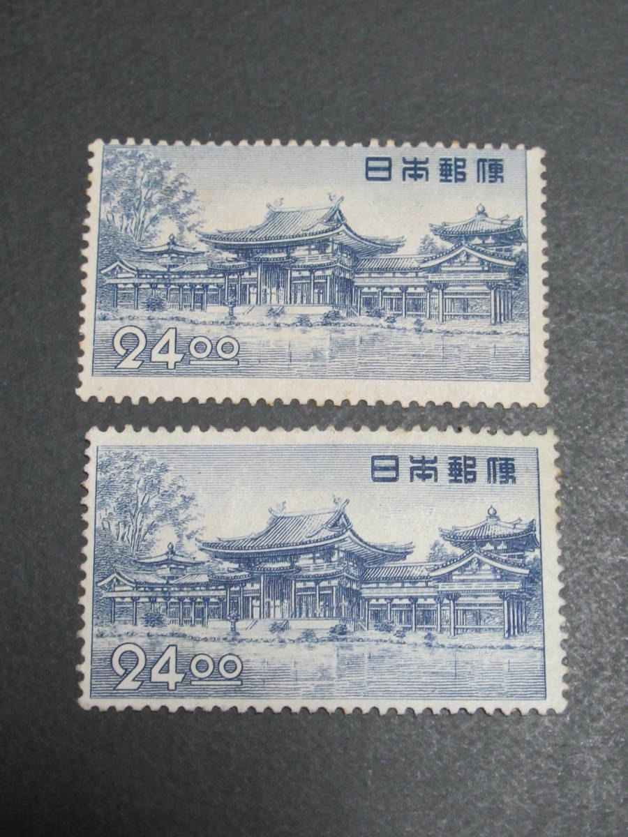 《普通切手・各種》 24円・旧平等院・未使用・NGとシミ・2枚① 《カタログ価 16000円》