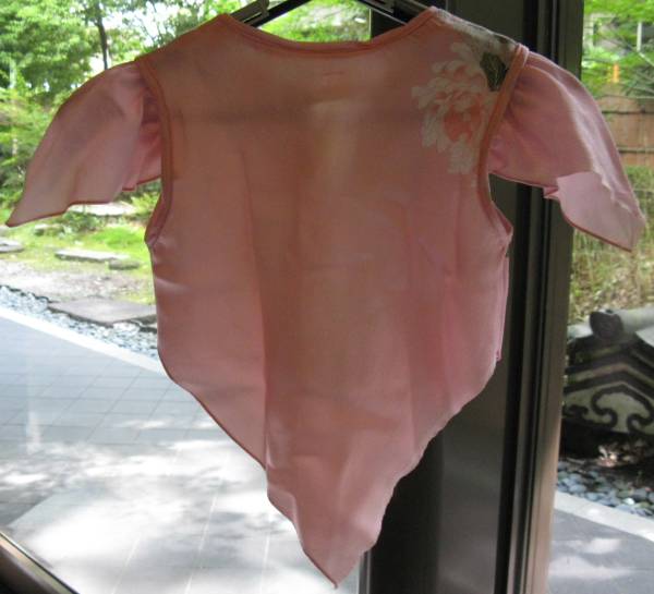 御覧頂きまして、ありがとうございます。 手作りの為、一点ものでございます。お子様の発表会や、お出かけの一枚にいかがでしょうか。 ≪素材≫ ナイロン 40% レーヨン 60% ≪サイズ≫ 肩幅 30cm 丈(最長) 44cm 袖(最長) 18cm 脇下間 36cm (120サイズ相当) ≪商品紹介≫ 素人が家庭用ミシンで作りました。生地は水洗い後に裁断し、縫製後に再度水洗い、アイロンがけしてあります。 布がバイアス(織目に対して斜め)に裁ってありますので、体に沿うようなフィット感があります。布端はジグザグミシンにて処理しております。素材は化学繊維ですので、お子様の体質に合わない場合は、入札をお控えくださいませ。 ≪お手入れ方法≫ 洗濯の際ネットに入れると、型崩れが防げます。また、布目に沿って軽く引っ張りしわをのばして干すと、形が整うでしょう。アイロンも布目に沿ってかけてください。 ≪出品者より≫ 丁寧な作業をモットーにしておりますが、なにぶん素人でございます。ご理解のある方、寛容な方の入札をお待ちしております。ノークレーム・ノーリターンにてお願いします。