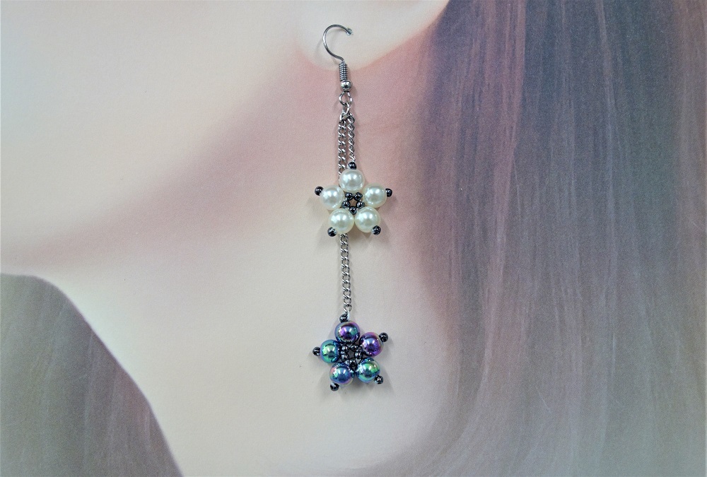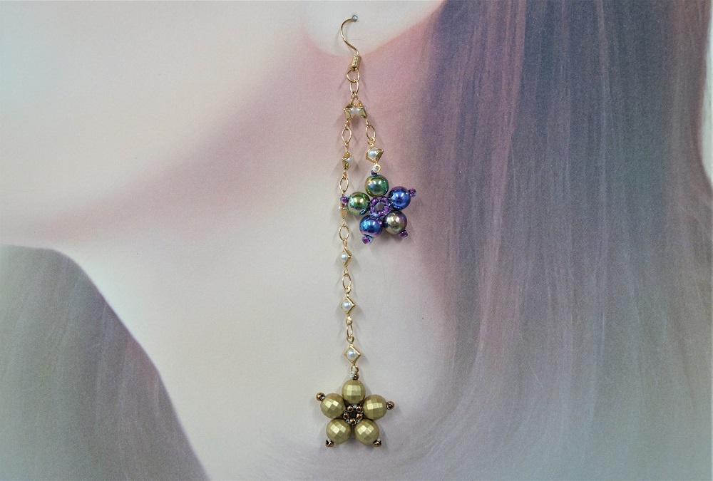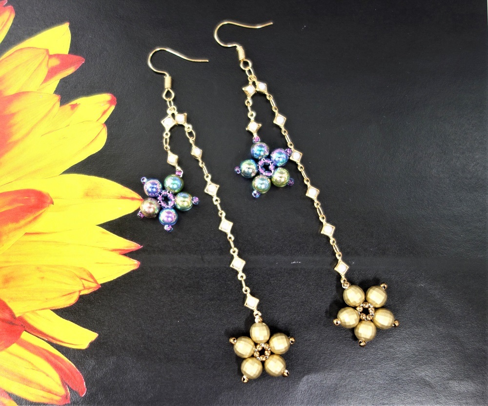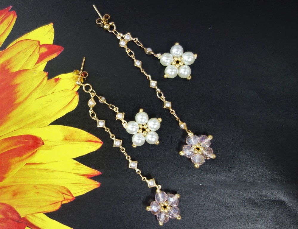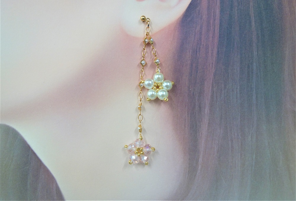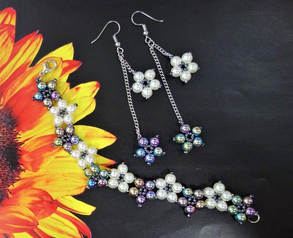 【ビーズ編み/花のピアス3セット&ブレスレット1点を一括販売】送料無料/ハンドメイドアクセサリー