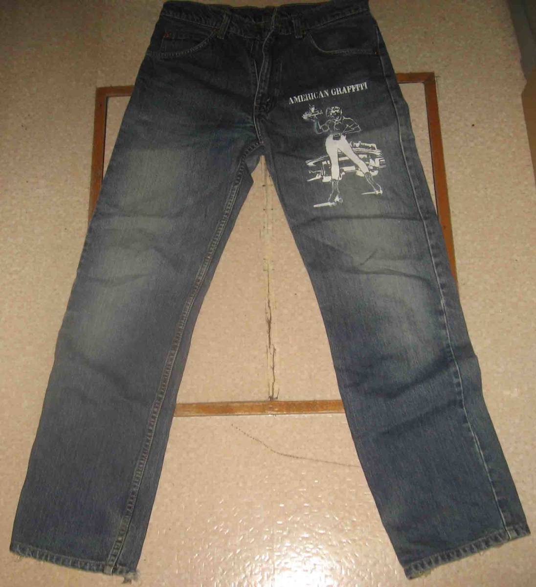 USEDのGパンに私がペイントしました。 W32インチ わたり29 股下78 裾幅セ20ンチ レターパック送料無料