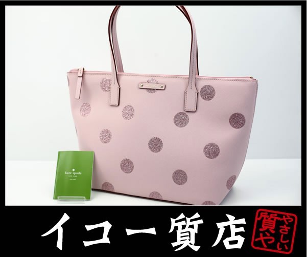 その他商品説明 | 若い女性を中心に絶大な人気を誇るファッションブランド“ケイトスペード”より、トートバッグ『haven lane』をご紹介します。表面に独特な質感を施したピンクカラーのポリウレタンキャンバスに、ラメ入りのドット柄を全体にあしらった、キュートなデザインが人気のトートバッグです。デイリーユースに最適な程良いサイズ感も魅力の1つで、外出時に持ち歩きたい荷物・小物を楽々収納出来ます。また、可愛らしいカラーリングとデザインが一際目を引き、ファッションのアクセントアイテムとしてもお勧めの一品です。この機会に是非ご検討下さい。 状態:店頭では“未使用”として販売しておりますが、展示品の為“ランクA+”にて出品致します。バッグ底部角部分に、展示に伴う小傷がごくわずかに見られますが、その他の部分に気になる様な展示傷・汚れなどは特にありません。全体的に見て判断すれば、状態は大変美品です。ランクA+につき、自信を持ってお勧めします。 |