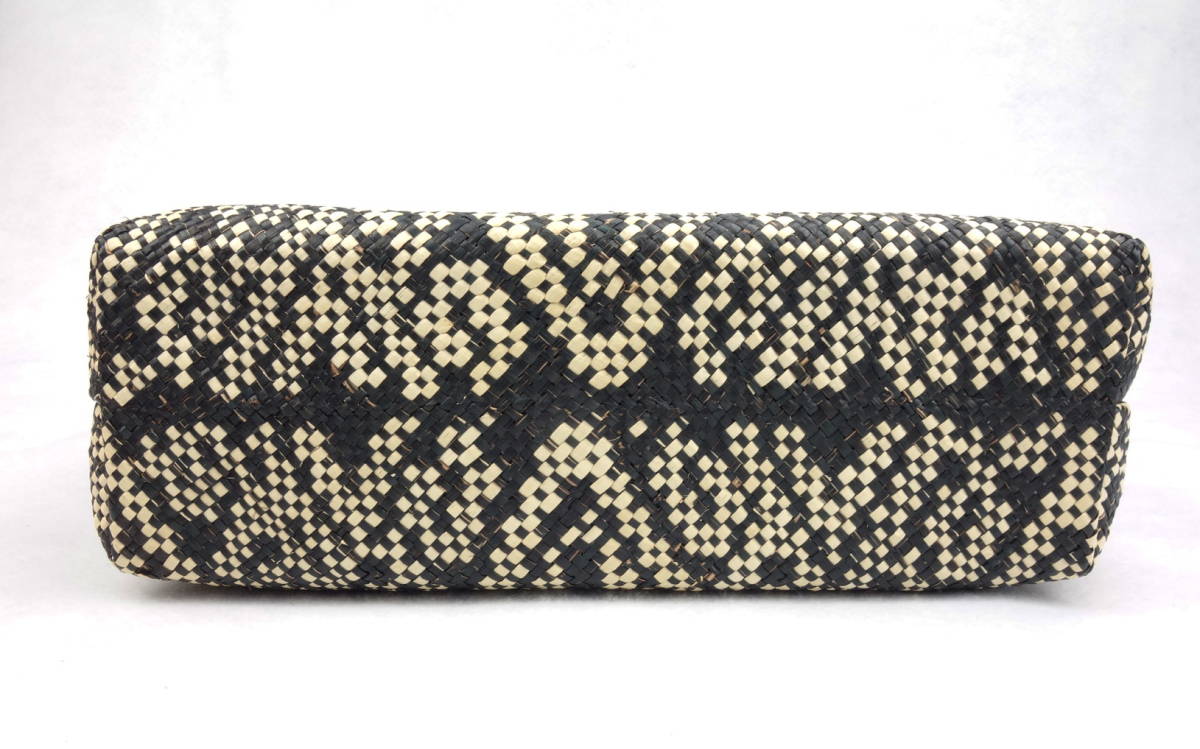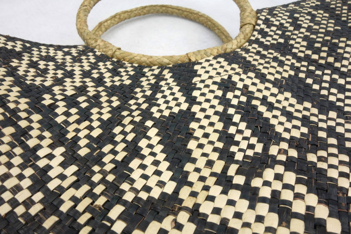 バニグはフィリピンで昔から作られている伝統的な手織り物で、ヤシ系植物の葉(ブリ、パンダナス、ティコグなど)から手作業で作られ、主にマットとして使われていました。この技術が発展し、マットだけではなく、帽子や靴、バッグなどに用いられる様になりました。 ここ数年、ヨーロッパやアメリカで大変話題となり、多くのセレブにも人気が高まっています。この需要の高まりと共にフィリピンの大事な産業になり、仕事のなかった地域の人の収入源にもなっています。 素材となる葉の加工は全て手作業で行われ、乾燥は天日干しの為、天候に左右されます。その後、用途に応じて、様々な色で染色が施されます。通常バニグを1枚作るのに職人さん1人が1週間かかり、さらにバッグに加工するのに別の専門の職人さんが1~2週間かけて作ります。 サイズ 全高:約36cm 高さ:約27cm 上幅:約45cm 下幅:約33cm マチ:約12cm 取っ手内径:約13cm ハンドメイド商品について:当商品はハンドメイドの為、商品によっては多少の型崩れがある場合が御座いますが、これはハンドメイドの魅力でもあります。アジアン雑貨特有の小さなキズやヒビ・色むら等は、ご理解頂ければと思います。 写真のモデルさんの身長は約160cmです。 撮影はフィリピンで行いました。 | |||