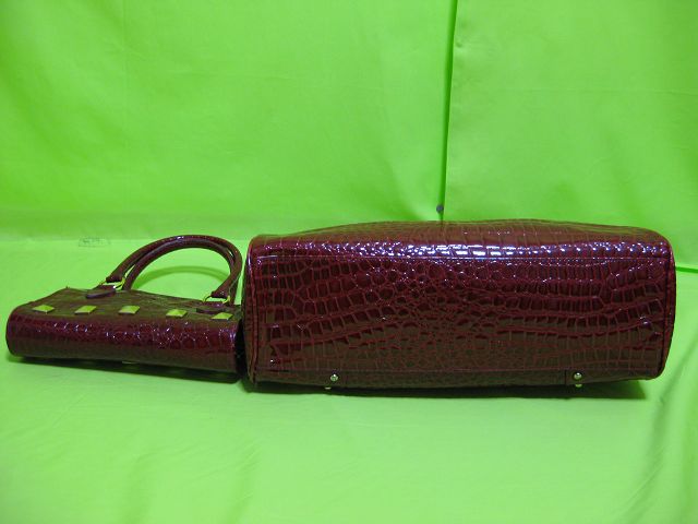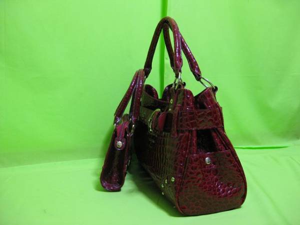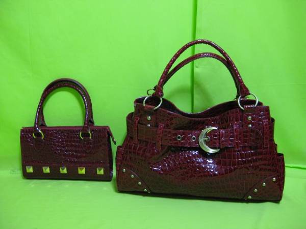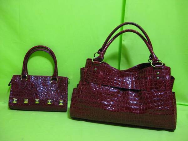 ★バッグ★手提げ★ハンド&ミニ★親子バッグ★2点★クロコ調★型押し★エナメル★暗めワイン系★高級感★エレガンス★