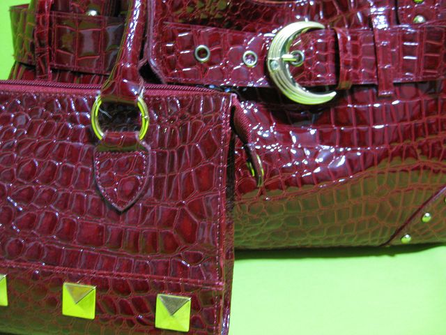 ★バッグ★手提げ★ハンド&ミニ★親子バッグ★2点★クロコ調★型押し★エナメル★暗めワイン系★高級感★エレガンス★単品使い回し可能★