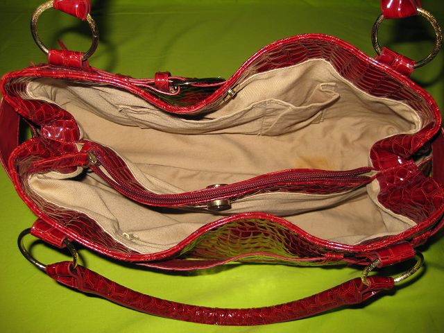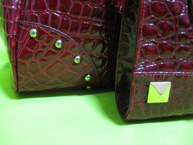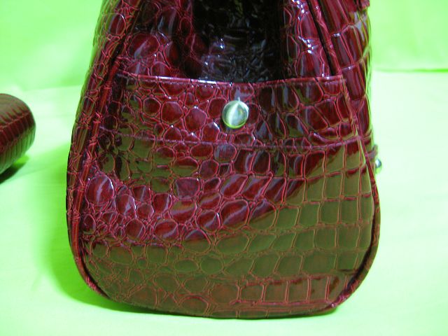 光沢感ありのエナメルクロコダイル調型押し、合成皮革ですが高級感があります。
