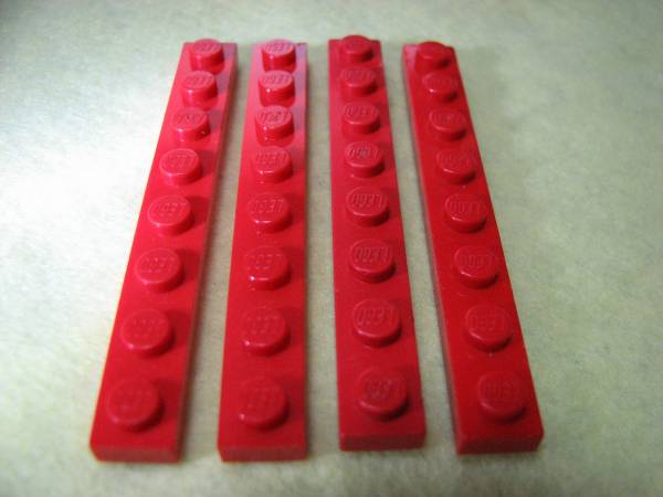 ★レゴ-LEGO★1x8★プレートパーツ★赤★4個★USED★