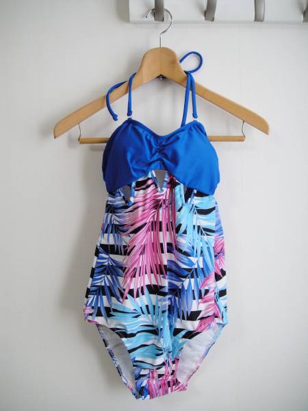 ボタニカル柄ときれいな色が目を引く素敵な水着です。