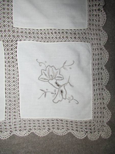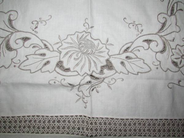 (旧家・蔵出し)(古布・綿レ-ス花模様テ-ブルクロス)貴重