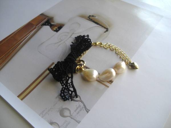 アンニュイな秋色・・シリーズです♪ロマンチックな夜に・・繊細なオフ;ホワイトのバロックの淡水パールのブレスレットです♪母貝つ きの13ミリから18ミリ位の大きなバロックパールに黒のレースリボンを合わせてロマンチックな表情です♪リボンは取り外しできますのでシンプルなデザイ ンでも楽しんでいただけます♪ブレスレットの長さは全長23センチ位で調節自由です♪お揃いのネックレスも出品しています♪ハンドメイドを ご理解頂いてノークレーム、ノーリターンでお願いします
