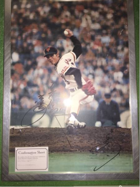 故人 元巨人の小林繁氏が某ミュージアムに来館し直筆サインを入れて額装された特大パネル額装品です。某ミュージアムに展示していました。サイズは縦87センチ×横62センチです。