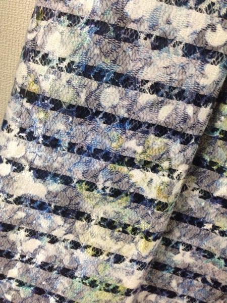 ボーダー柄プリントを施したレースファブリック使いに、フェミニンムード漂うスカート。ほどよいゆとりのあるセミタイトシルエットは、かわいくてお上品な優秀アイテム♪フロントに入れたタックデザインがポイントです。