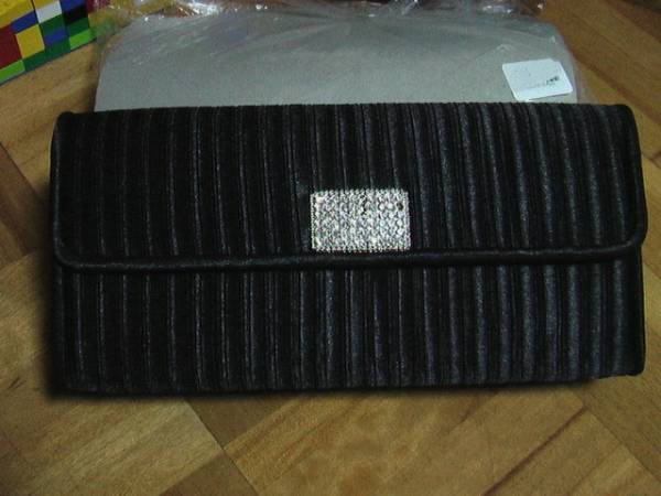 (^^) 黒 ブラック フォーマル ストライプ 宝石 パーティバッグ 未使用 セレモニー ウエディング 結婚 婚活 マッチング 通夜