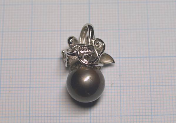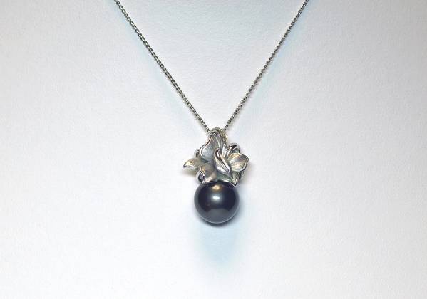 K18WGホワイトゴールド黒蝶真珠ペンダントになります。