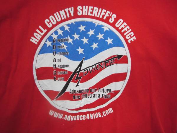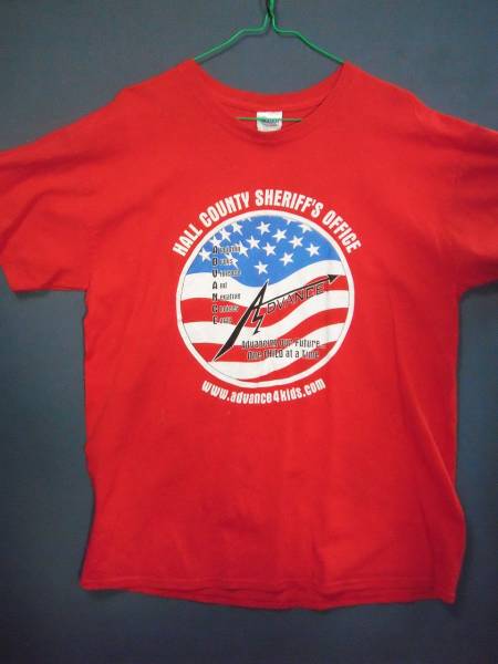 ③ USA古着 サイズL 前プリント ADVANCE 赤色半袖Tシャツ
