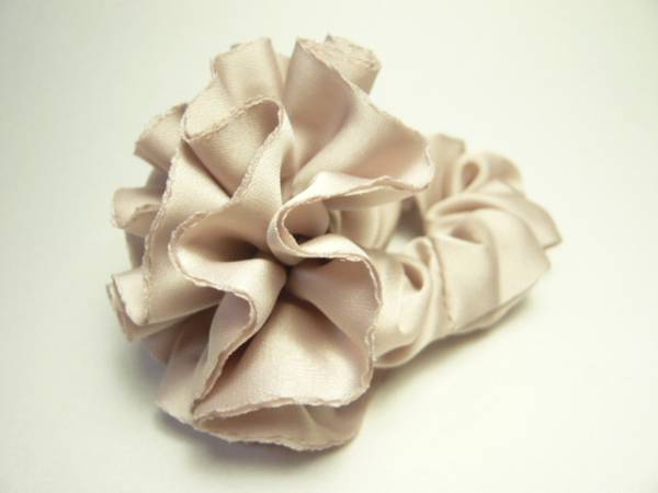 ボリュームたっぷりのサテンのお花が可愛い新作のシュシュです。 | ||