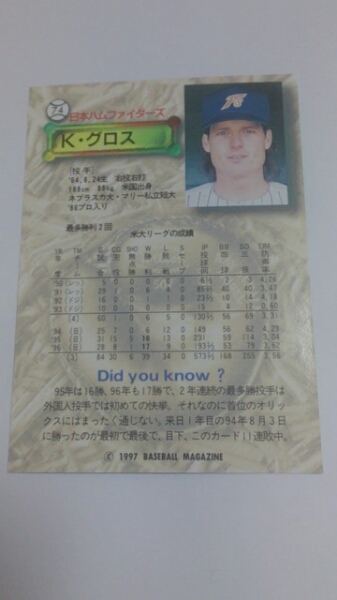 1995,1996最多勝キップグロス!日本ハムファイターズ1997BBM74 |